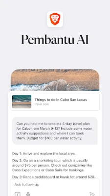 Pelayar Laman Sesawang Brave ialah pelayar web peribadi percuma yang menyekat iklan pihak ketiga untuk privasi anda. Nikmati pengalaman melayari lebih pantas dan selamat, disokong AI Brave Leo, Firewall + VPN, dan penyekat iklan. Pilihan lebih 100 juta pengguna.