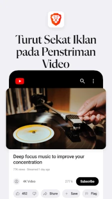 Pernahkah anda mengidamkan pengalaman melayari web yang bukan sahaja laju, tetapi juga kebal daripada ancaman digital? Pelayar Laman Sesawang Brave hadir sebagai penyelesaian muktamad untuk Android, direka untuk memberikan anda kelajuan tanpa kompromi, keselamatan menyeluruh, dan privasi yang tidak tergugat. Dengan pemblokir iklan bersepadu yang canggih, Pelayar Laman Sesawang Brave membebaskan anda daripada gangguan iklan pihak ketiga yang menjengkelkan, pop timbul yang tidak diingini, dan ancaman perisian hasad. Nikmati pelayaran yang lancar, bebas kekacauan, dan benar-benar fokus pada kandungan yang anda inginkan.
